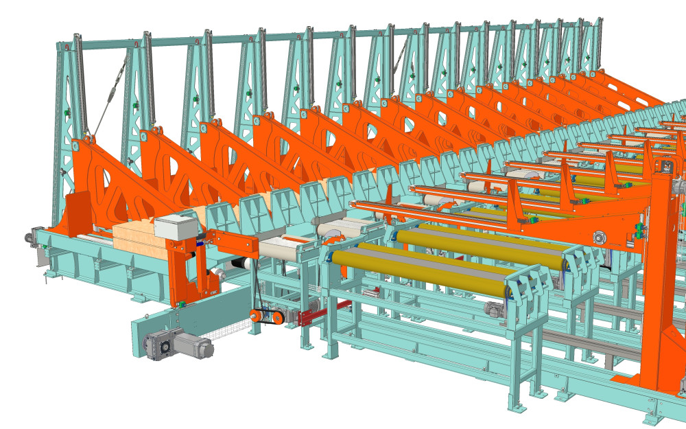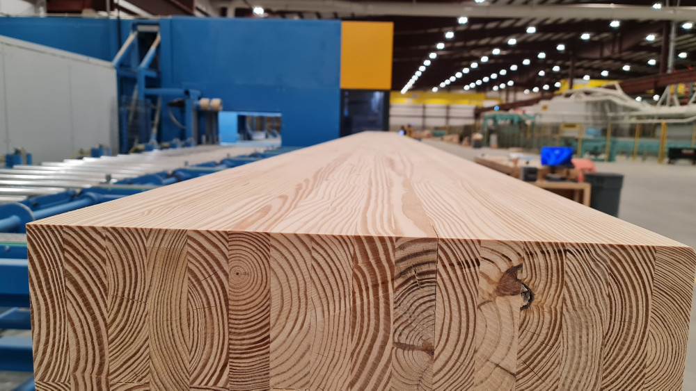 A high-performance automatic press for the flexible production of straight glulam beams and columns. It allows quick adjustment to different GLT shapes and supports beam sizes up to 80 inches in height and 24 inches in width, ideal for both custom and commodity production. The press uses fast cold-setting PUR adhesives, ensuring strong, durable bonds without the need for heat.