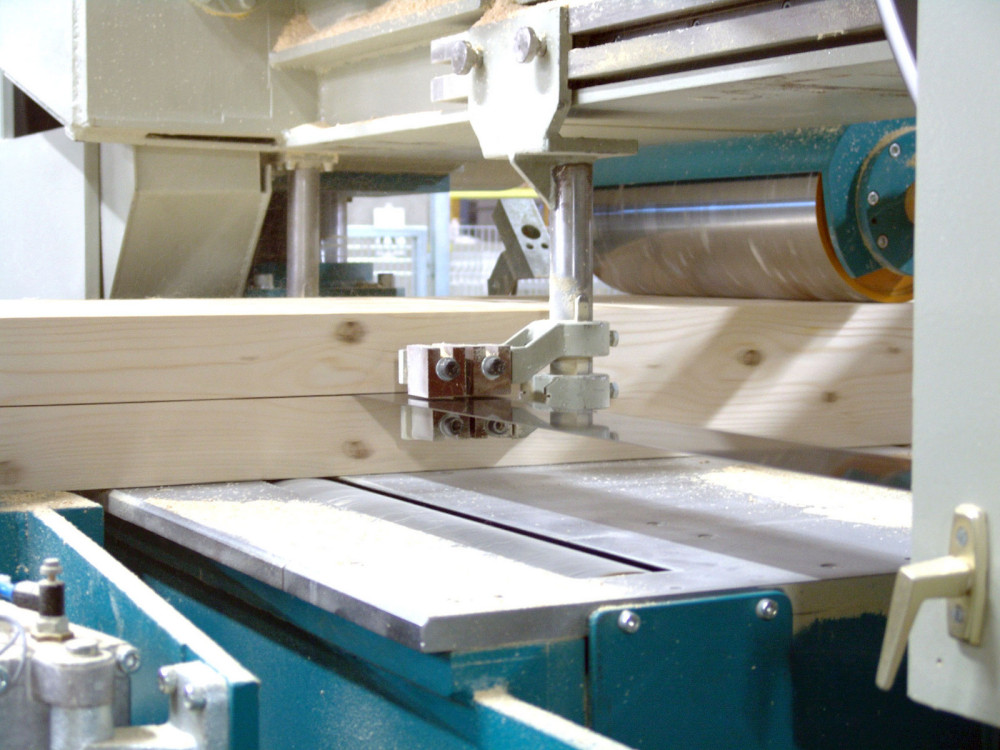 HTBS is used for splitting of single or batched laminated beams. Using double width laminations is an economic and quick way of increasing the productivity of a glulam press and most efficient way to produce thinner glulam beams. Double glued beams are split with the high quality bandsaw and planed to finished products.